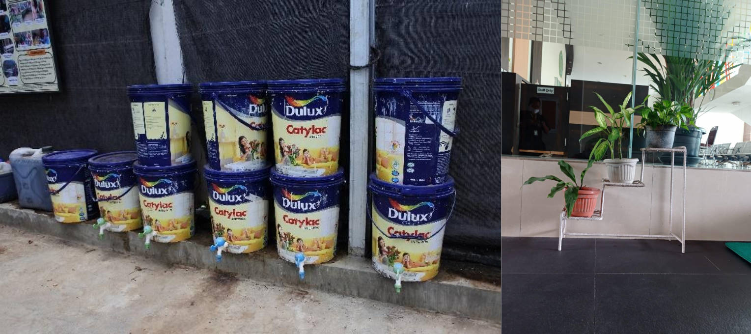 - As for the ferrous metal waste, UNISA Yogyakarta reused it for ornamental plant pots and a trash can holder (figure 1). While plastic waste such as paint buckets for processing liquid compost (figure 2).
