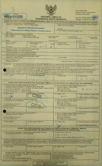 To manage toxic waste resulting from the learning process in the laboratory, UNISA Yogyakarta collaborated with a third party licensed to manage hazardous and toxic waste from the Ministry of the Environment from transportation to management procedures.