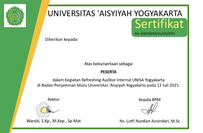- The paperless program at UNISA Yogyakarta campus also uses e-certificates sent via e-mail to participants in seminars, training, workshops (figure 5).