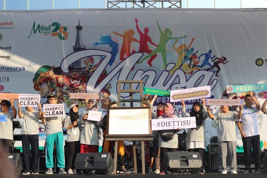 - UNISA Yogyakarta also implemented the declaration of the UNISA Movement to be free of plastic waste and the zero plastic program and minimize the use of paper (figure 6).