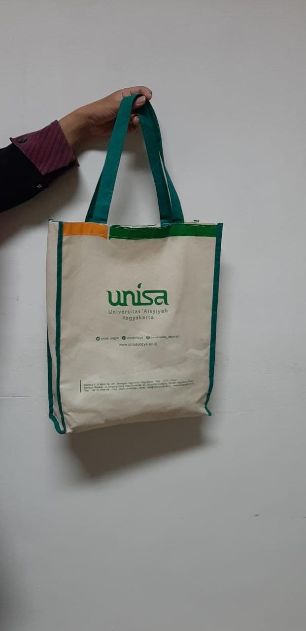 - In addition, to reduce the number of inorganic waste, UNISA Yogyakarta releases tumblers and bags with UNISA tags for all the community in UNISA Yogyakarta (figures 5 and 6). Ultimately, the number of inorganic waste decreases dramatically.